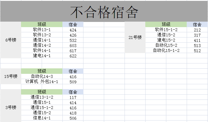 以下为第十周宿舍卫生检查结果,如有疑议请于5月12日前来逸夫楼D206咨询。