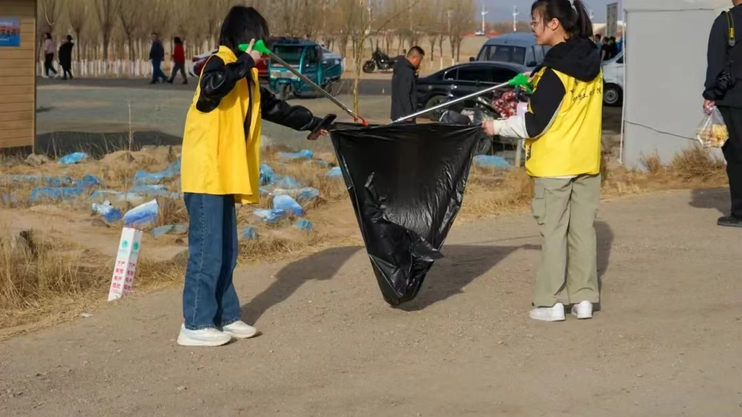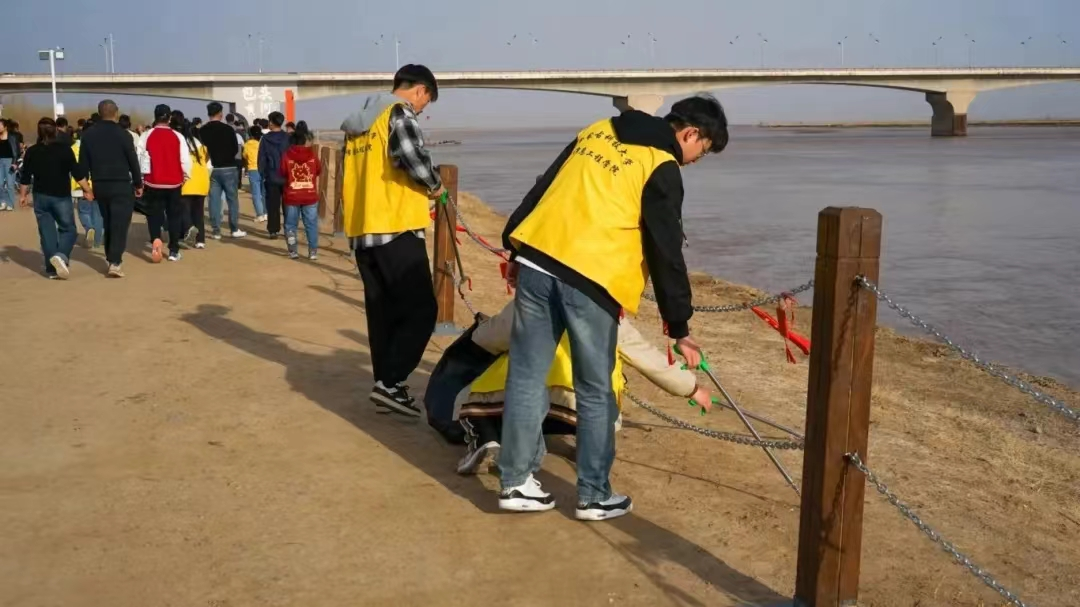参观结束后,同学们来到了黄河岸边,开展了一场清理垃圾的环保行动。大家手持垃圾袋、夹子等工具,认真捡拾岸边的废弃物,用实际行动守护黄河的清洁与美丽。
