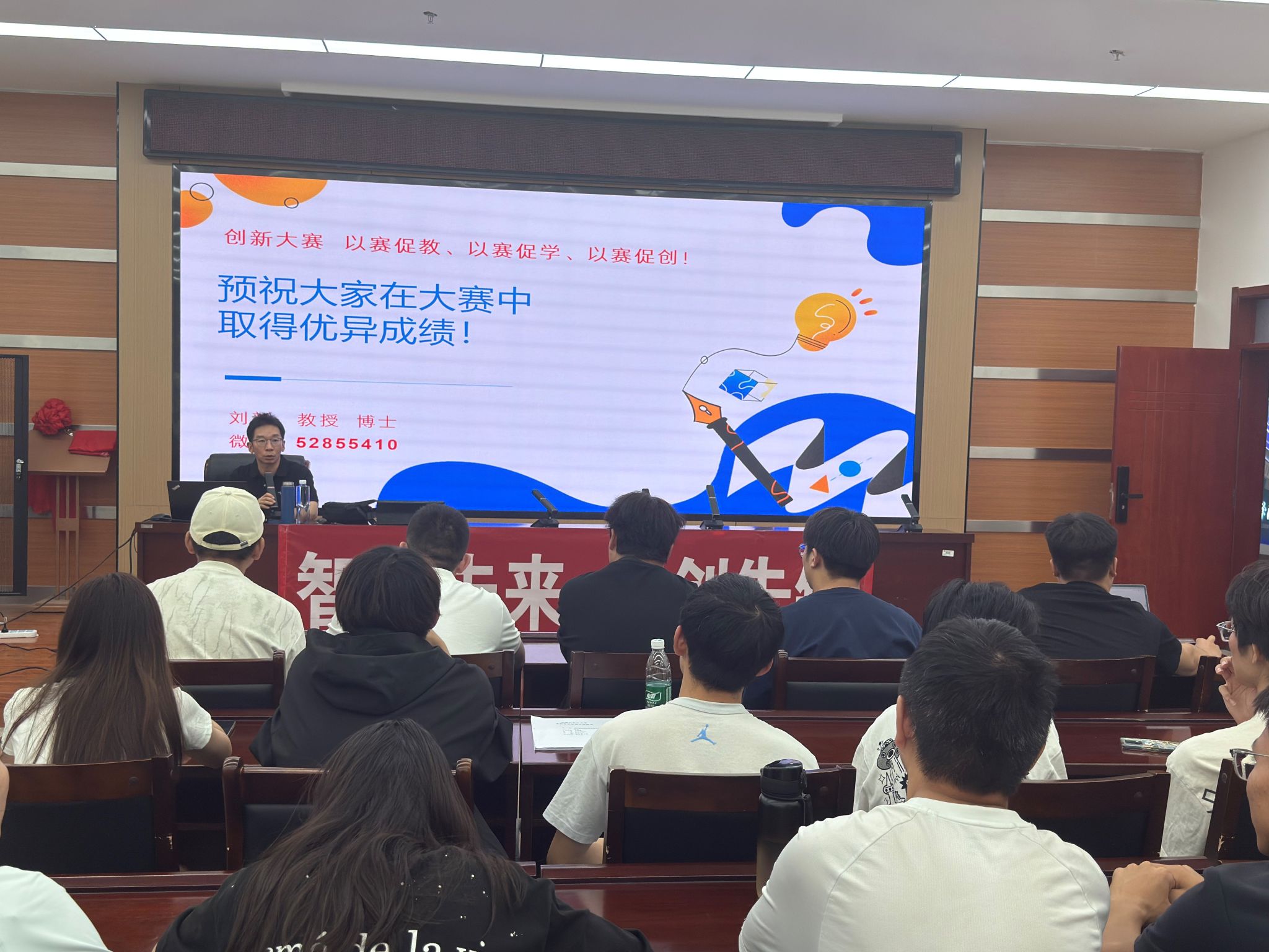 仪式开场,负责老师介绍了本次开训仪式的授课老师刘新教授以及此次培训的重要意义,鼓励每一位参赛同学都能抓住这次宝贵机会,在培训中打磨项目、提升能力,向着大赛的荣誉全力冲刺!现场的同学们个个斗志昂扬,眼神里满是对接下来学习的期待。