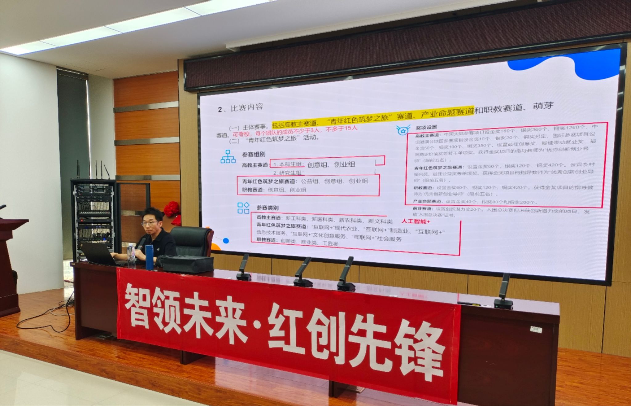 刘新老师从对比赛规则解读与赛前指导、技术实现、商业模式设计及路演答辩技巧等方面进行了全面且深入的讲解。