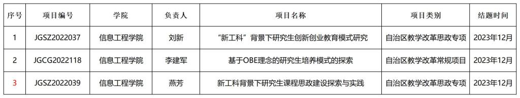 信息工程公司2022年自治区教学改革(研究生)