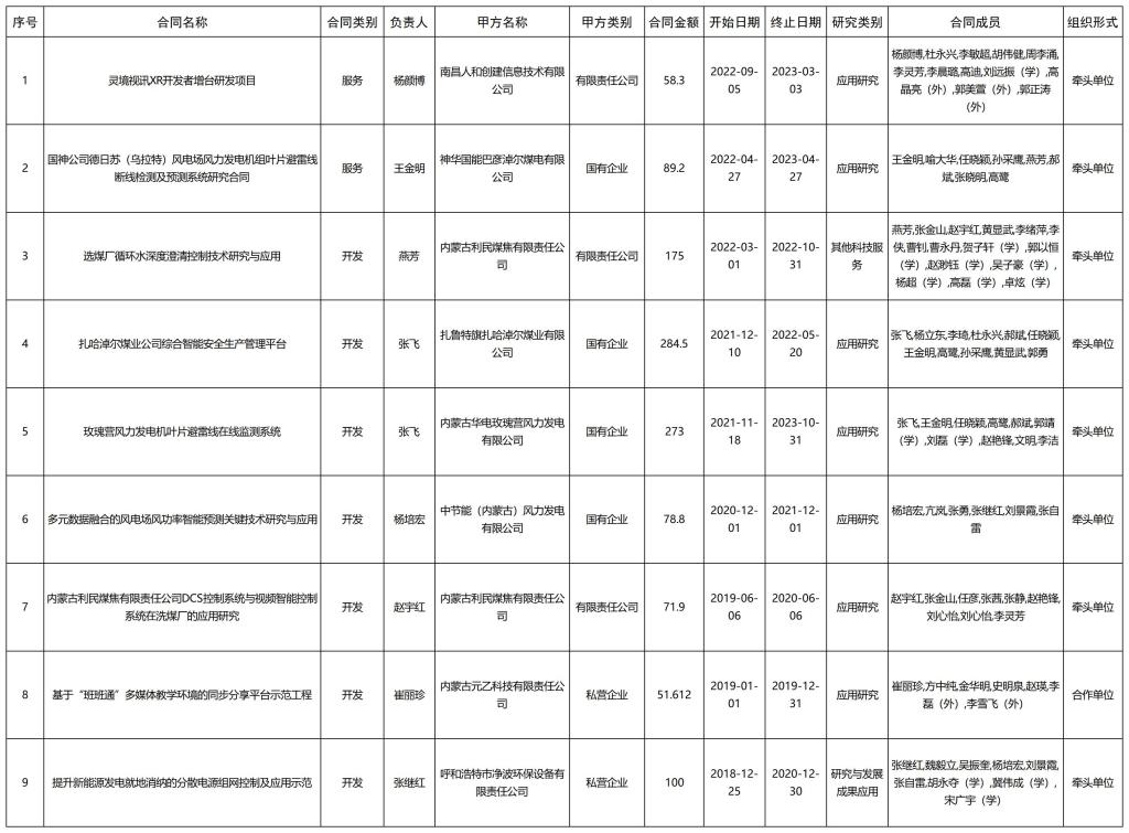 信息工程公司2018-2022年横向项目(50万以上)